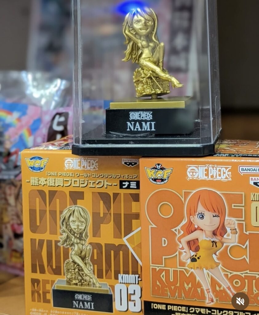 ワンピース関連の商品も多数あり、冒頭で紹介した”ナミ像”のフィギュアもあります。